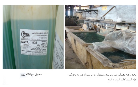 بخش لایه نشانی مس بر روی مفتول (به ترتیب از دور به نزدیک: وان اسید، کات کبود و آب)